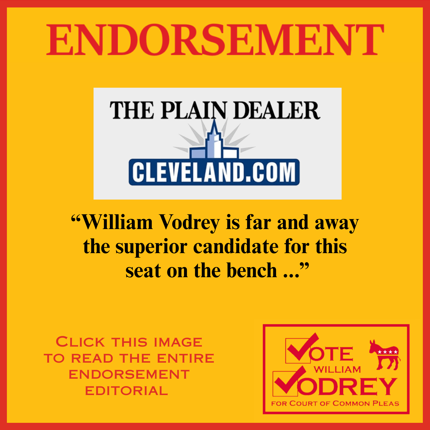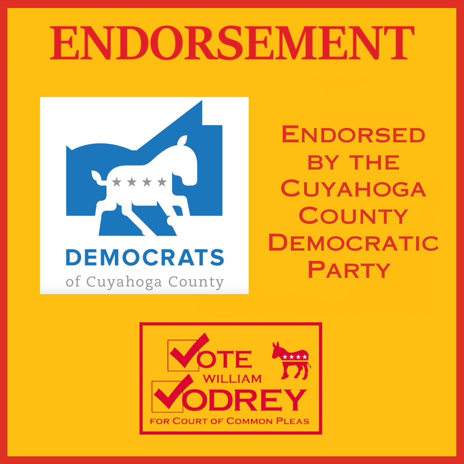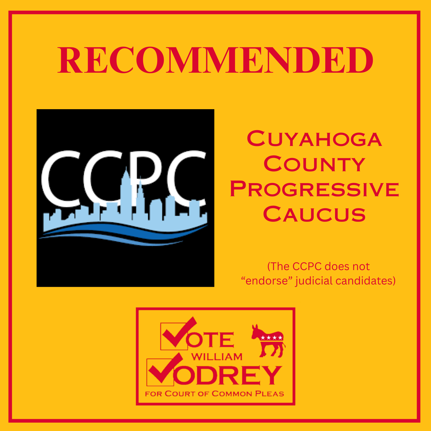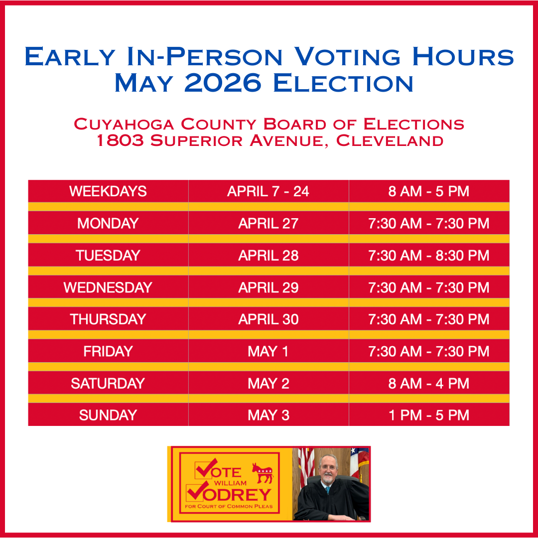 I’m honored to have been unanimously endorsed by the Cuyahoga County Democratic Party; my challenger in the primary didn’t even bother seeking the endorsement. Even so, this campaign has gotten a lot more challenging, and I’ll definitely need your help. Many voters are unaware of judicial candidates, and you can help a lot by sharing your recommendation – and a link to this website – with all your friends and neighbors.
